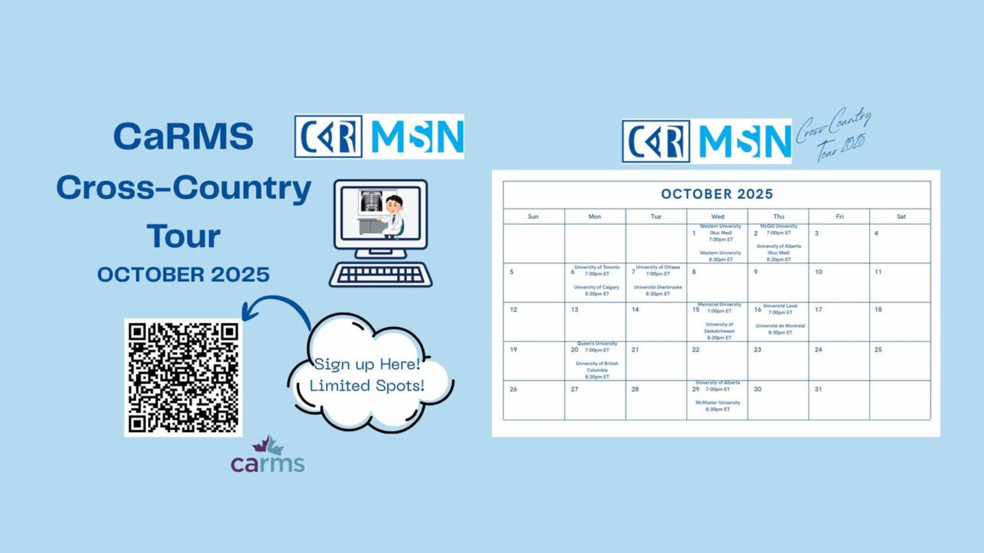 Description de l’événement : Le Medical Student Network (MSN) Cross-Country Tour est une série de présentations sur Zoom à propos des différents programmes de résidence en radiologie offerts à travers le Canada. C’est une occasion parfaite pour en apprendre davantage sur les détails des différents programmes, parler avec les directeurs de programmes et poser vos…